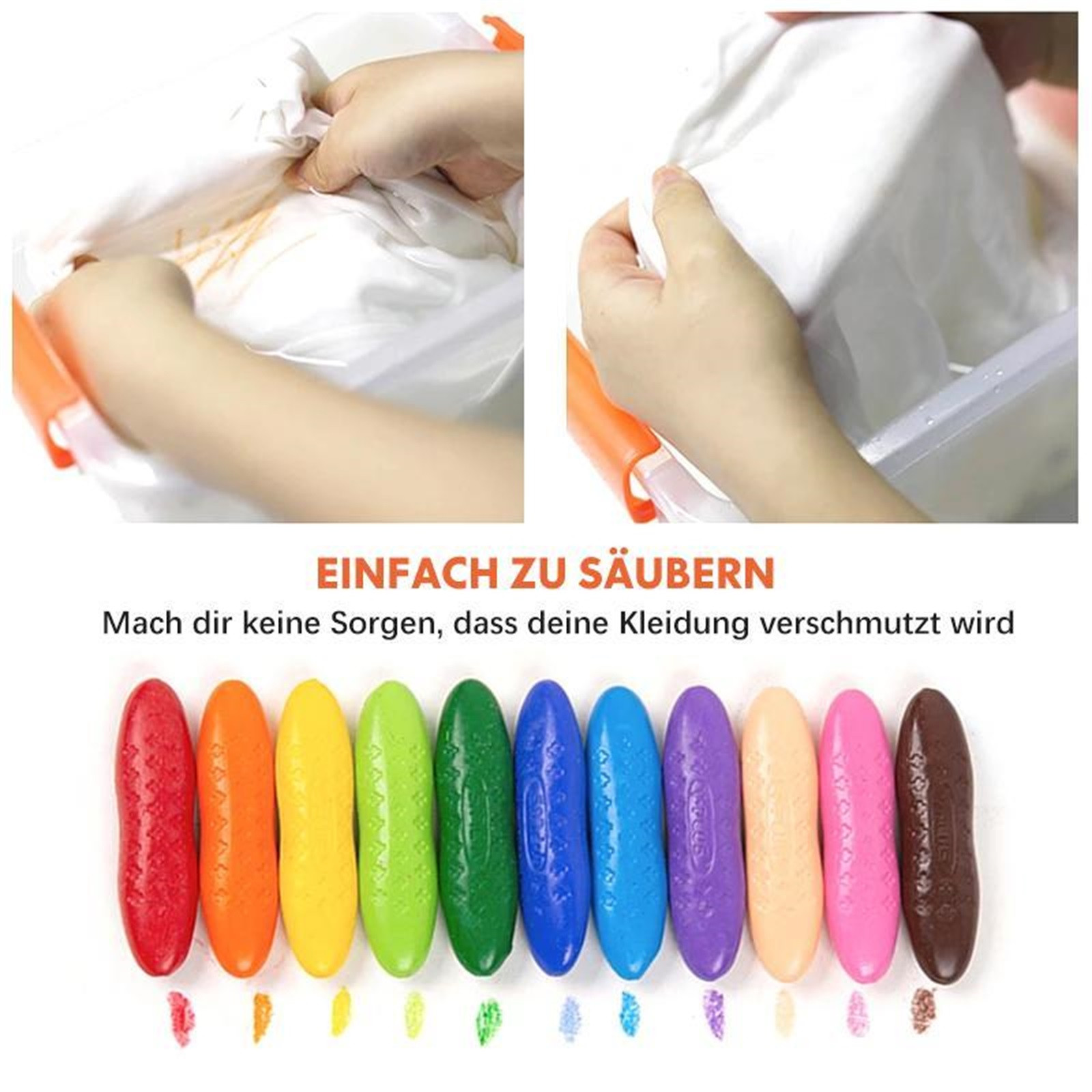 Washable and does not stick to your hands-washable crayons in colorful 3D colors are very easy to put on and take off. Their surface is smooth and will not touchs the baby's hand. It can be cleaned with hand sanitizer. The fingers do not stick to the crayons, so parents can entertain their children without causing confusion.