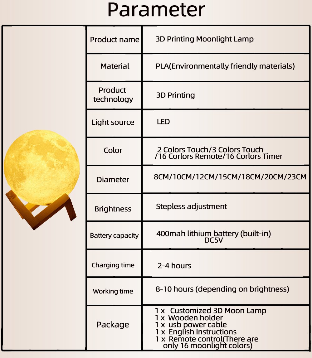 5. We recommed 12CM or above if you want to print photo to the moon lamp.
