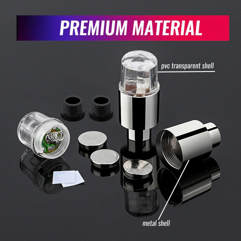 * Led flash tire wheel valve cap light can enhance visibility at night and in bad weather to ensure safety. When your wheel starts to move, it automatically flashes and forming a colorful aperture of light which make your car/motorcycle/bicycle look beautiful.