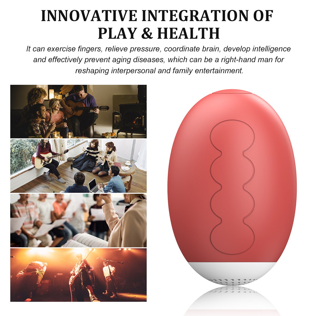 With built-in 500mAh lithium battery, this compact and wireless hand piano is convenient to use and recharged. Due to built-in 13 kinds of musical instruments, three octaves from bass to treble, 144 rhythms and 10 repertoires, plus challenge mode and new intelligent evaluation technology, it can effectively improve your enthusiasm of autonomous learning, relieve pressure and develop intelligence, satisfying music lovers of different levels and realizing zero-based enjoyment of music.