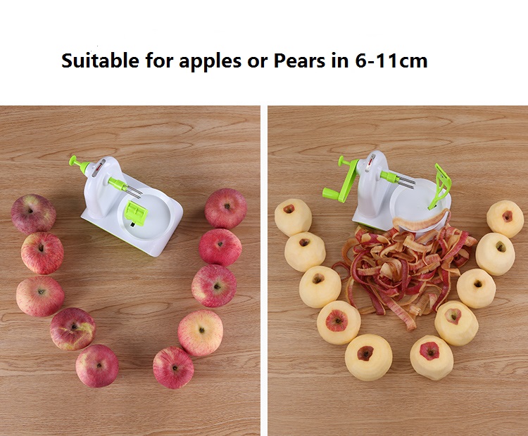 * Compare to electric peelers, it peels thinner and almost no apple flesh comes off, while electric peelers lose a lot of fruit.