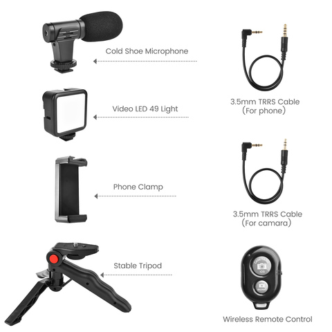 Smartphone & Camera Vlogging Studio Kits Video Shooting Photography Suit with Microphone LED Fill Light Mini Tripod